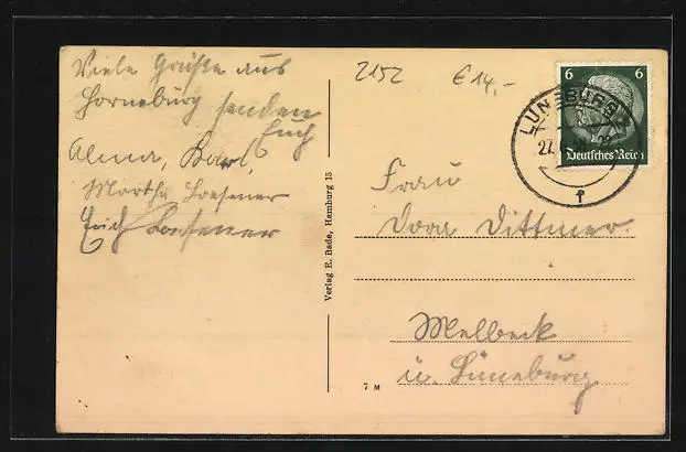 alte Ansichtskarte, gelaufen 1938, Eckknick li. oben, guter Zustand