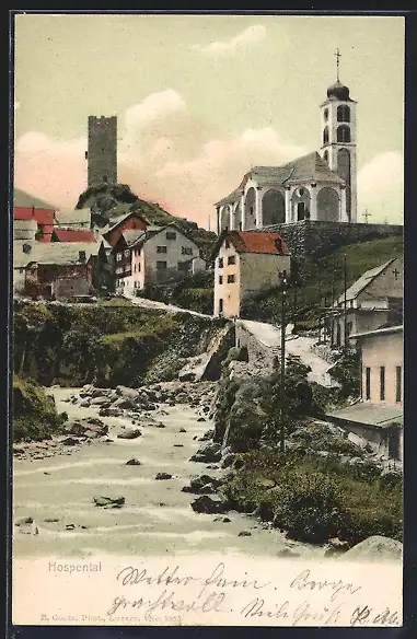 AK Hospental, Bllick auf die Kirche vom Wasser aus