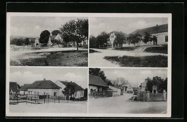 AK Hostín, Impressionen des Ortes, Strassenpartie und Wohnhäuser