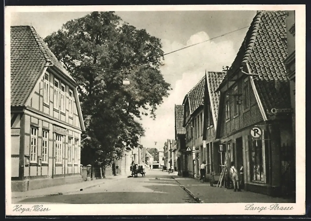 AK Hoya /Weser, Lange Strasse mit Geschäft, Fachwerkhäuser