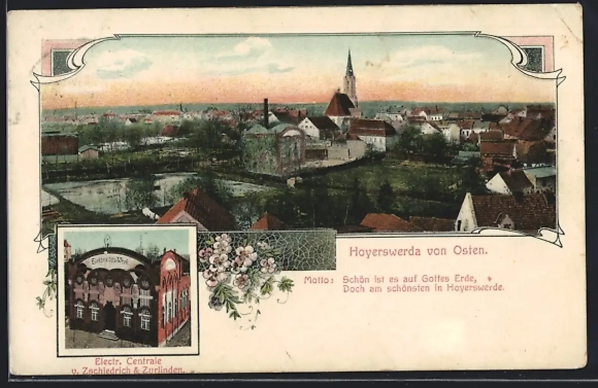 AK Hoyerswerda, Electr. Centrale v. Zschiedrich & Zurlinden, Ortsansicht von Osten