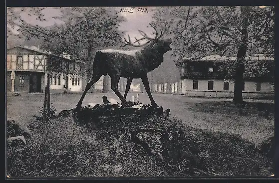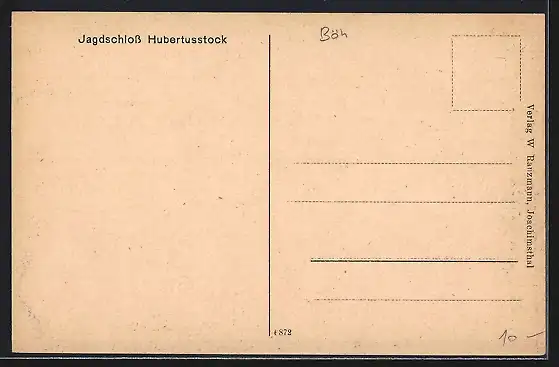 AK Hubertusstock, Jagdschloss mit Hirschdenkmal