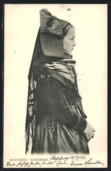 AK Hübsche Elsässerin in Tracht im Seitenprofil