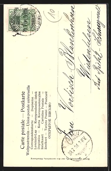 gelaufen 1904, Eckknick oben li., guter Zustand