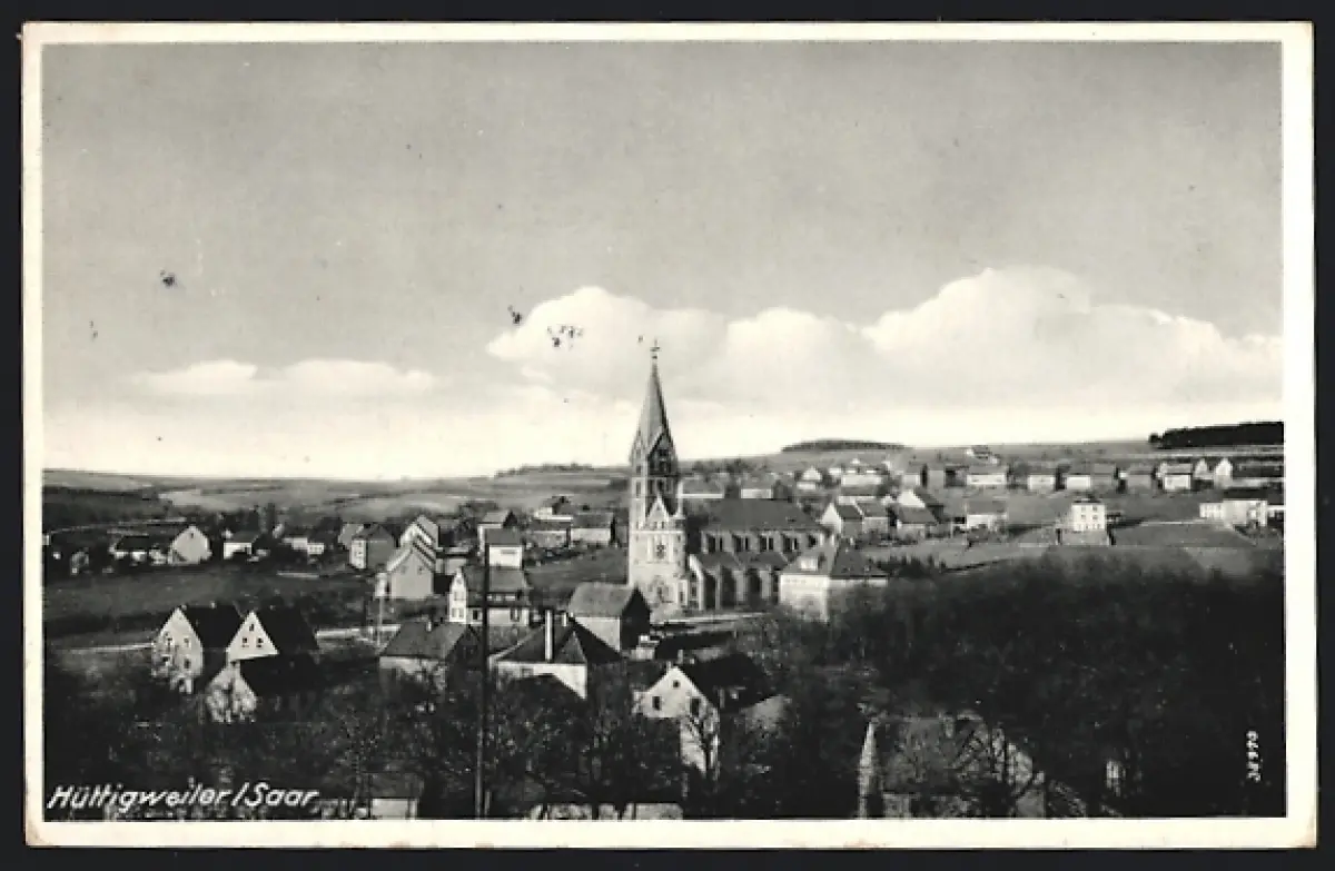 AK Hüttigweiler /Saar, Ortsansicht mit Kirche