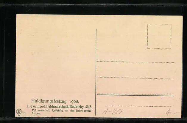 AK Huldigungsfestzug 1908, Die Armee d. Feldmarschalls Radetzky 1848, Feldmarschall Radetzky an der Spitze seines Stabes