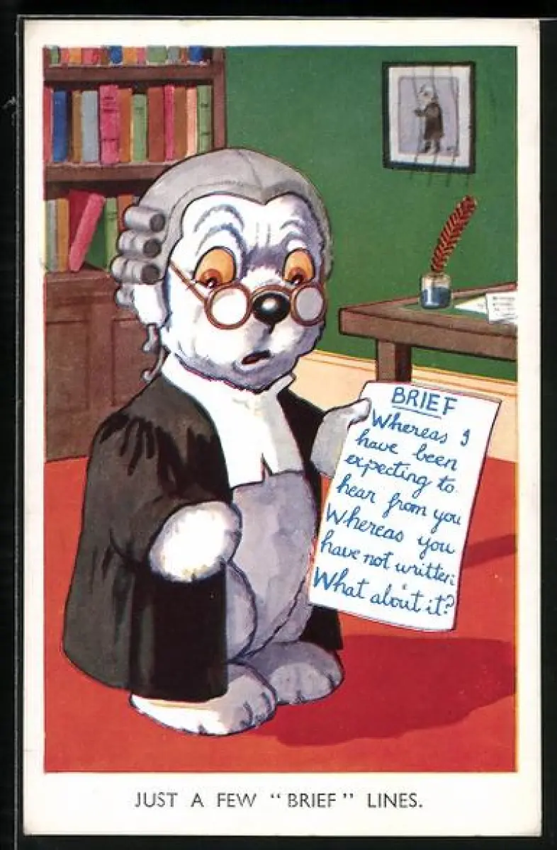 AK Hund als Jurist im Talar mit Perücke und Brille