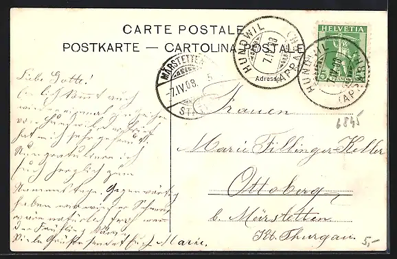 alte Ansichtskarte, gelaufen 1908, guter Zustand
