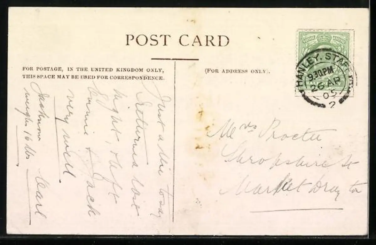 alte Ansichtskarte, gelaufen 1905, rückseitig Klebe- und Papierreste, guter Zustand