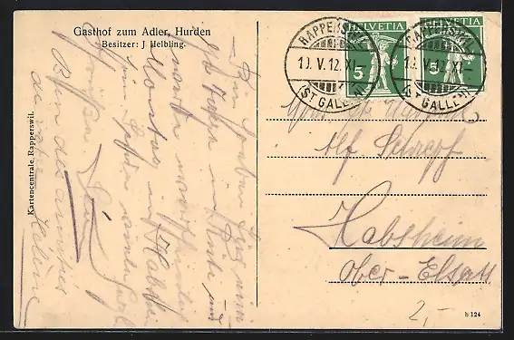 gelaufen 1912, Eckknick oben li., guter Zustand