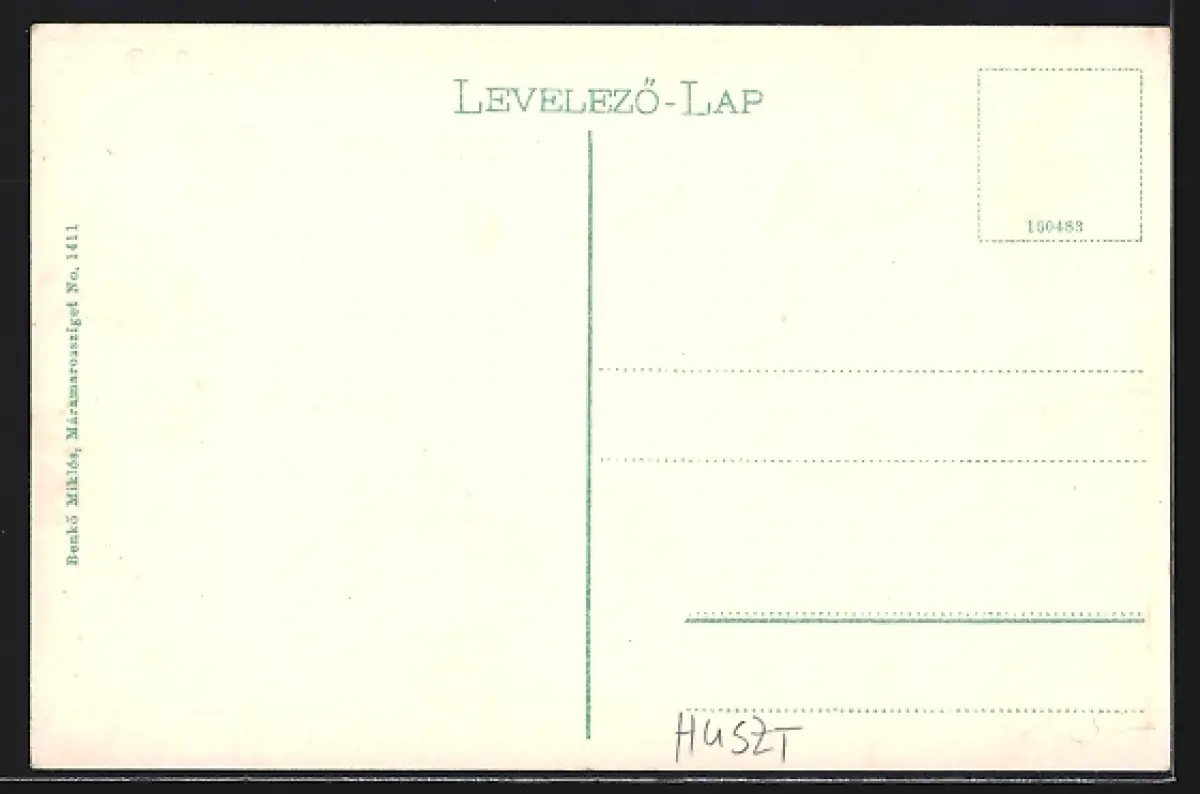 Personenbezogene Daten auf der Rückseite der Karte wurden durch blauen Textmarker unkenntlich gemacht. Die blauen Stellen sind auf die Vorderseite durchgeweicht und wirken sich negativ auf das Postkartenfoto aus