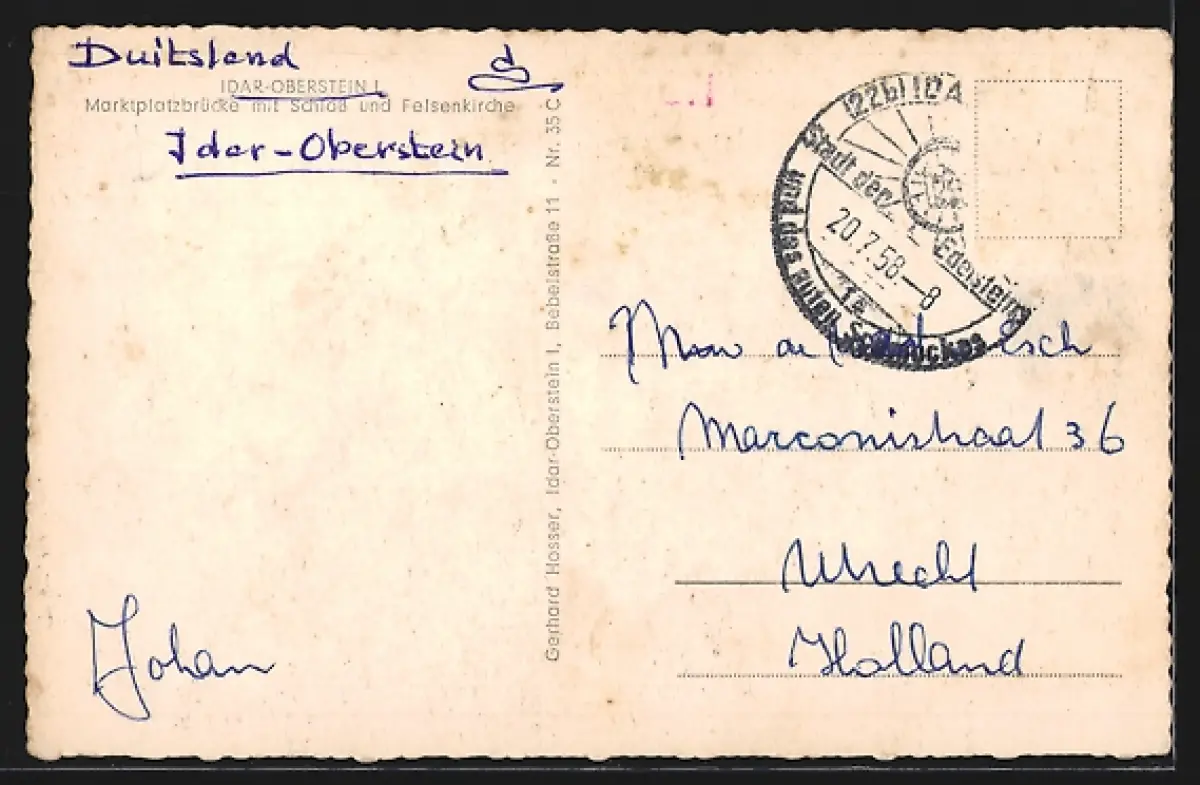 AK Idar-Oberstein, Marktplatzbrücke mit Schloss und Felsenkirche