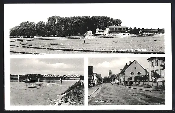 AK Iffezheim, Die Rennbahn, neue Rheinbrücke, Strassenpartie