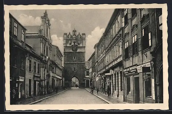 AK Iglau, Frauengasse, Blick auf den Turm und den Torbogen