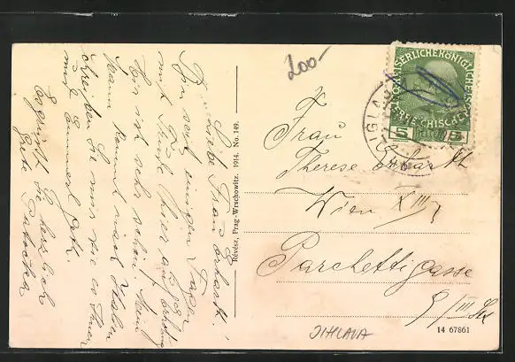 AK Iglau, Stadtpartie mit Blick zur Kirche