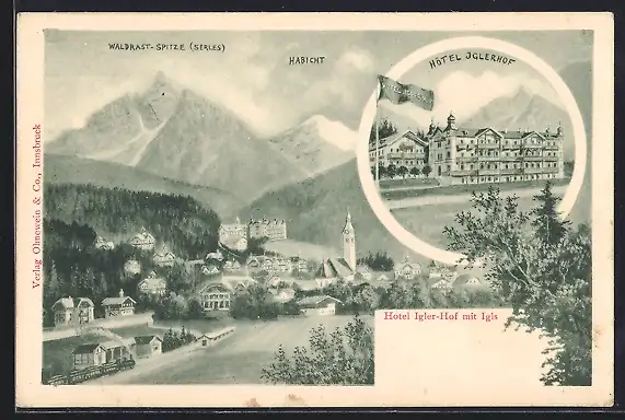 AK Igls, Hotel Iglerhof, Waldrast-Spitze & Habicht, Ortsansicht