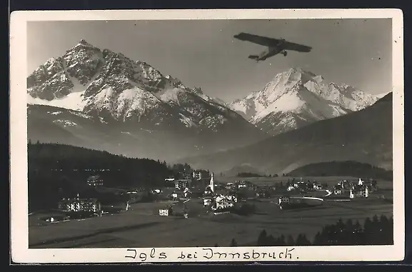AK Igls, Ortsansicht gegen Serles und Habicht