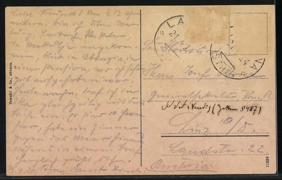 alte Ansichtskarte, gelaufen 1924, Briefmarke entfernt, Eckknick unten li., guter Zustand