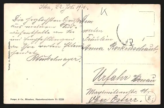 alte Ansichtskarte, gelaufen, Briefmarke entfernt, rückseitig Oberflächenschaden, guter Zustand