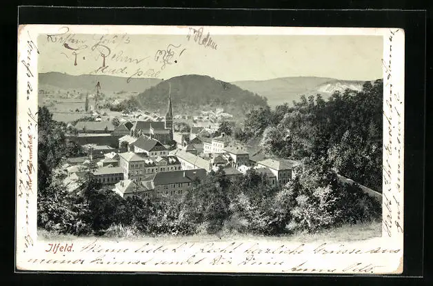 AK Ilfeld, Stadt mit Berglandschaft im Hintergrund