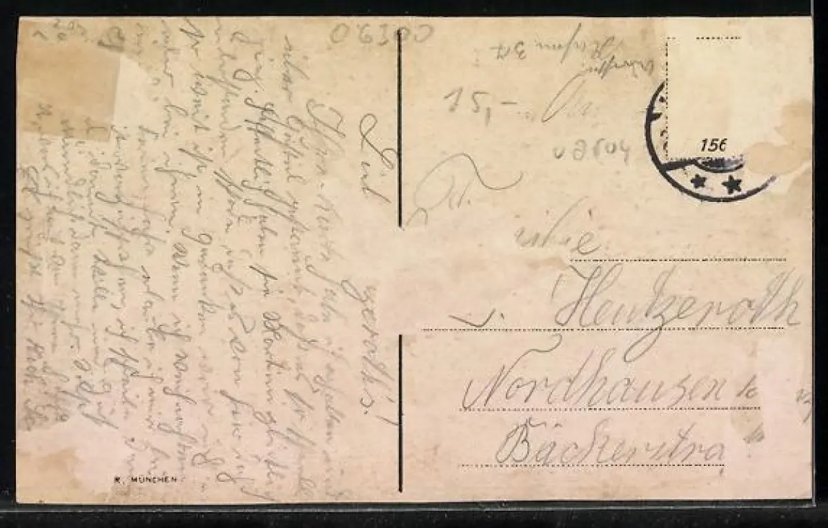 alte Ansichtskarte, gelaufen, Briefmarke entfernt, rückseitig Oberflächenschaden, guter Zustand