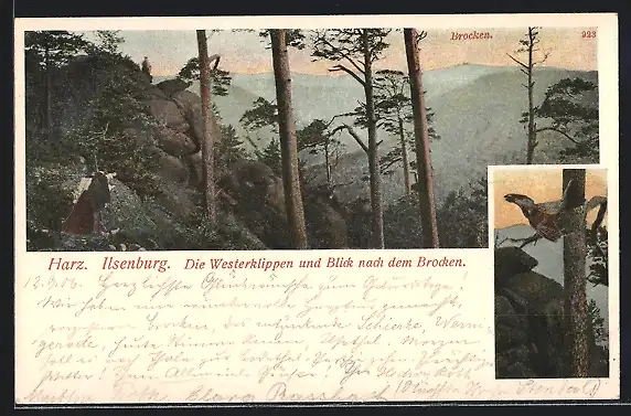 AK Ilsenburg, Westerklippen und Blick nach dem Brocken, Raubvogel