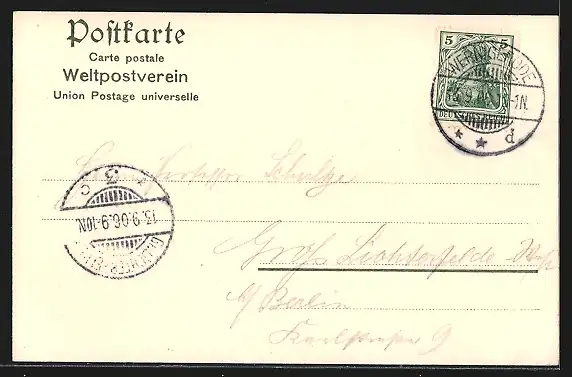 alte Ansichtskarte, gelaufen 1906, guter Zustand