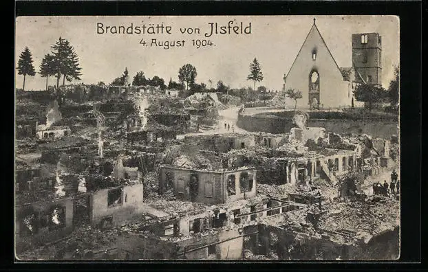 AK Ilsfeld, Brand 1904, Teilansicht mit zerstörter Kirche
