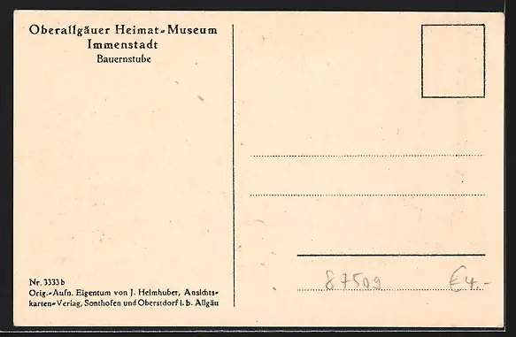 AK Immenstadt / Allgäu, Oberallgäuer Heimat-Museum, Bauernstube
