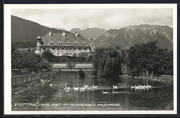 AK Imst, Hotel Post mit Heiterwand und Rauchberg