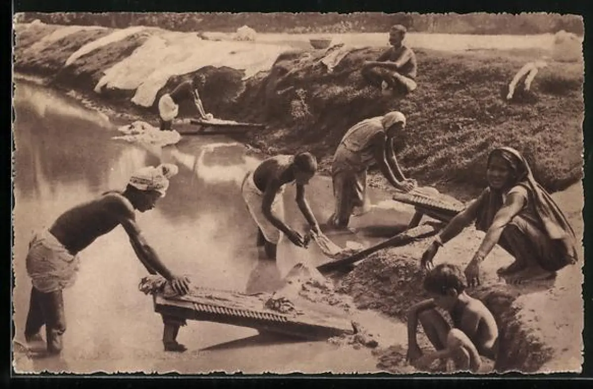 AK Indes, Au bord du Gange, laveurs et laveuses, Männer und Frauen waschen am Fluss