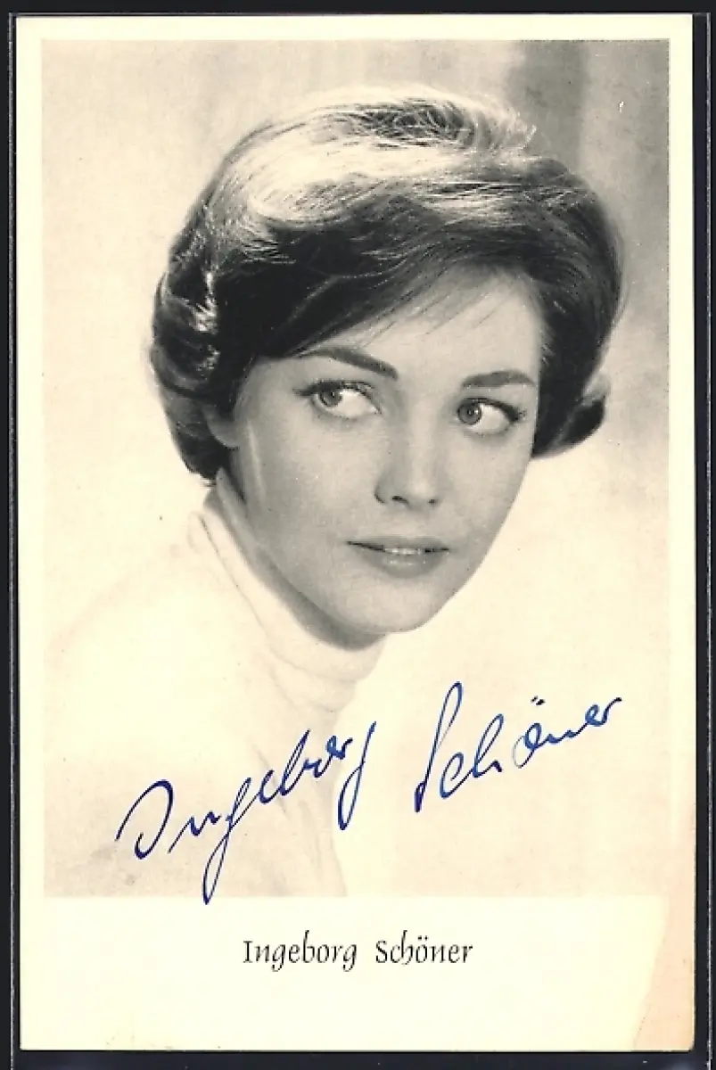 AK Ingeborg Schöner im Rollkragenpullover, Autograph