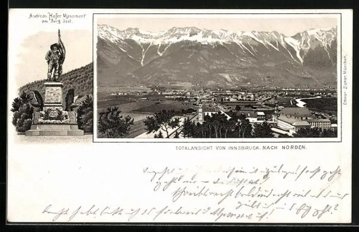 AK Innsbruck, Andre Hofer Monument am Berg Isel & Totalansicht