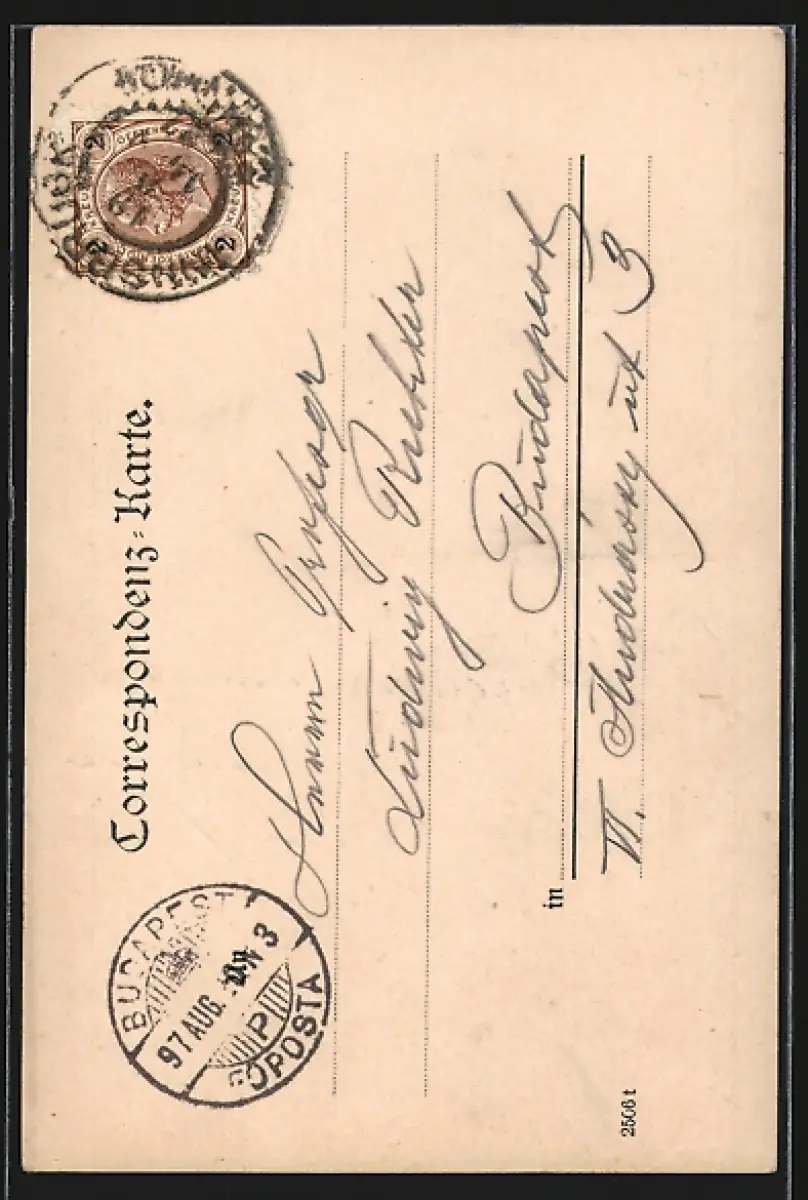 alte Ansichtskarte, gelaufen 1897, Eckknick links unten, guter Zustand