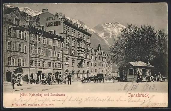 AK Innsbruck, Hotel Kaiserhof und Innstrasse