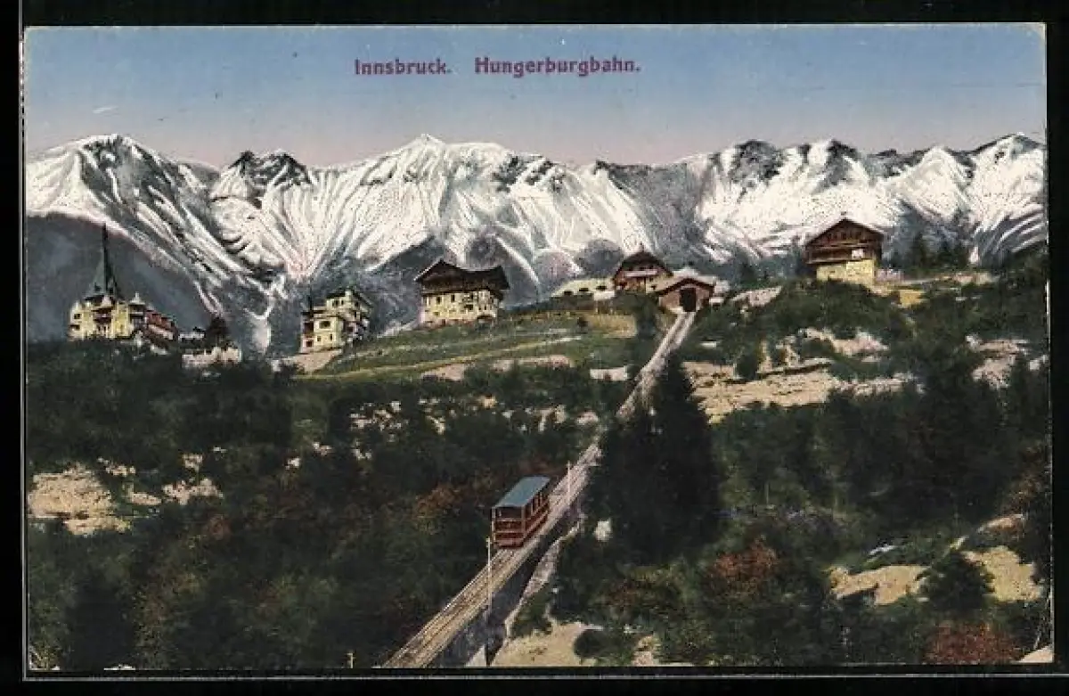 AK Innsbruck, Hungerburgbahn mit Häusern, Bergbahn
