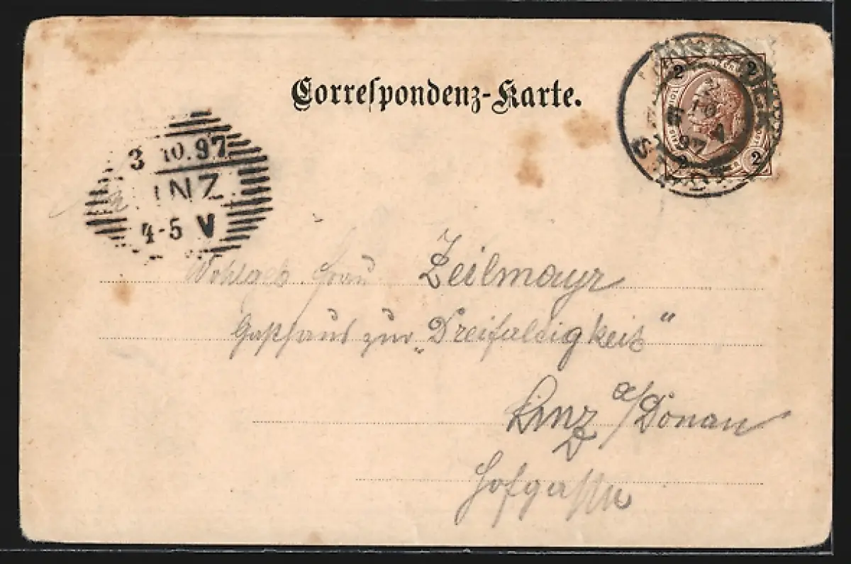 alte Ansichtskarte, gelaufen 1897, Eckknick re. oben, guter Zustand