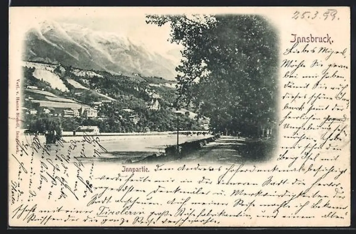AK Innsbruck, Innpartie, Flussufer, Bergpanorama