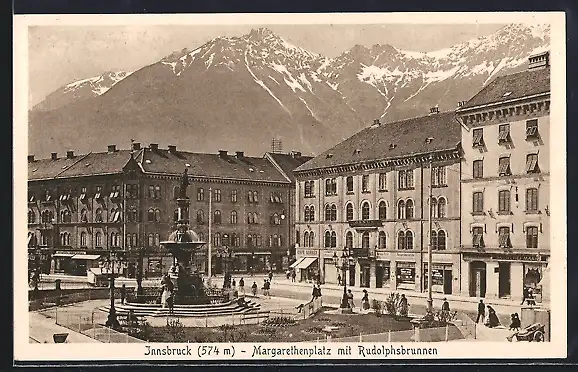 AK Innsbruck, Margarethenplatz mit Rudolphsbrunnen