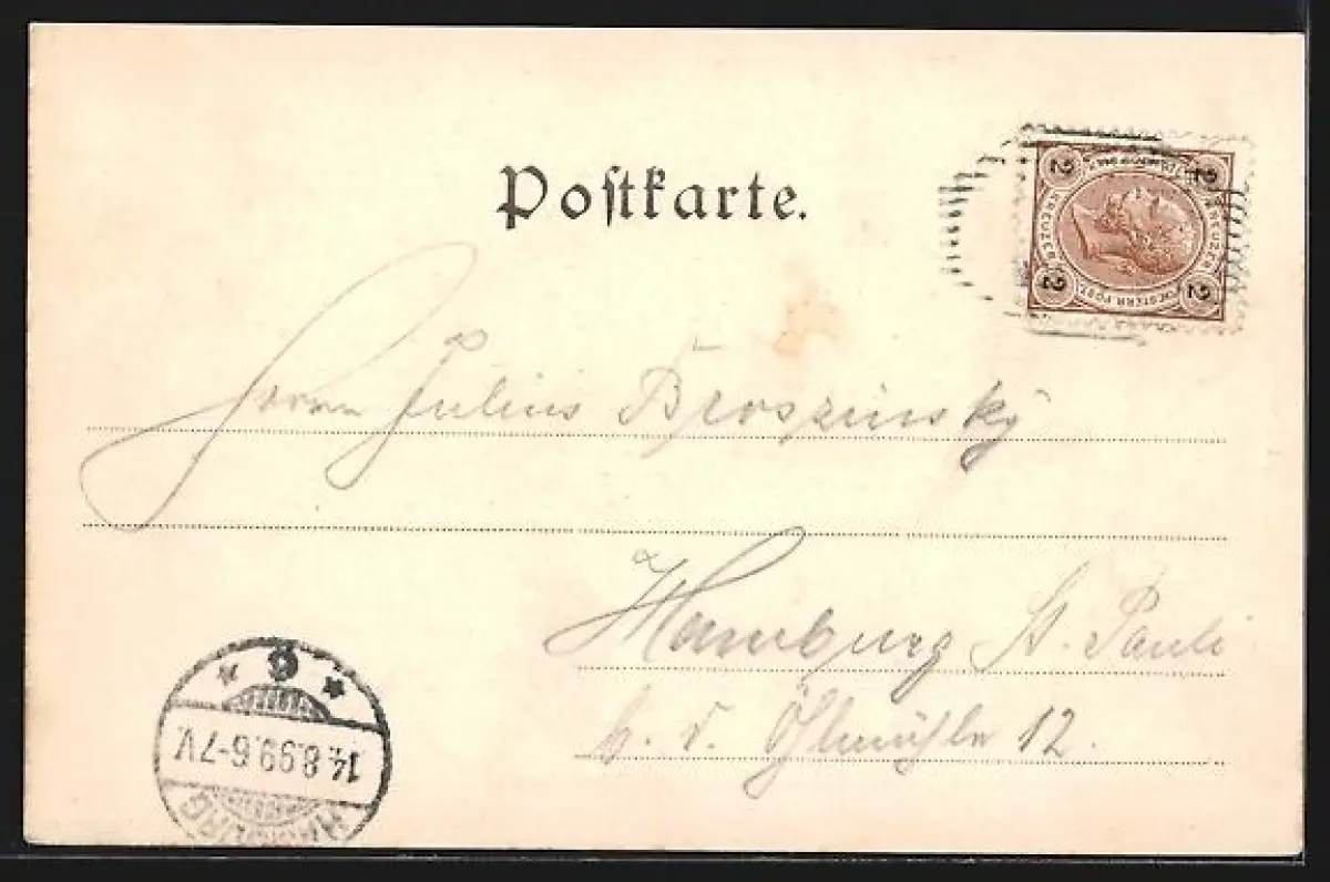 alte Ansichtskarte, gelaufen 1899, guter Zustand