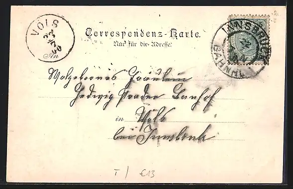 alte Ansichtskarte, gelaufen 1900, Stempelspur, guter Zustand