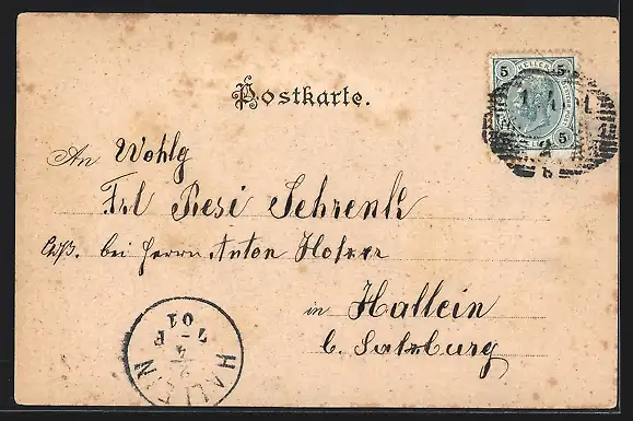 alte Ansichtskarte, gelaufen 1901, guter Zustand
