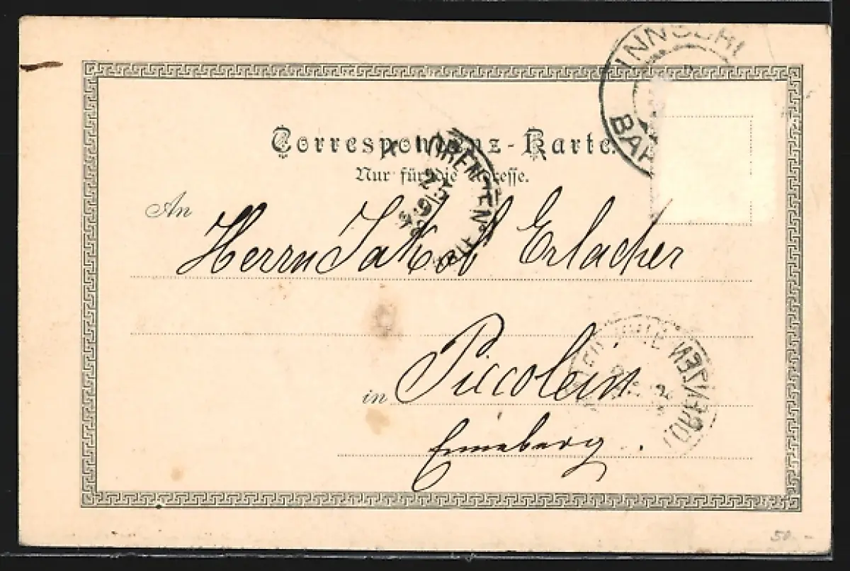 alte Ansichtskarte, gelaufen, Briefmarke entfernt, rückseitig Oberflächenschaden, guter Zustand