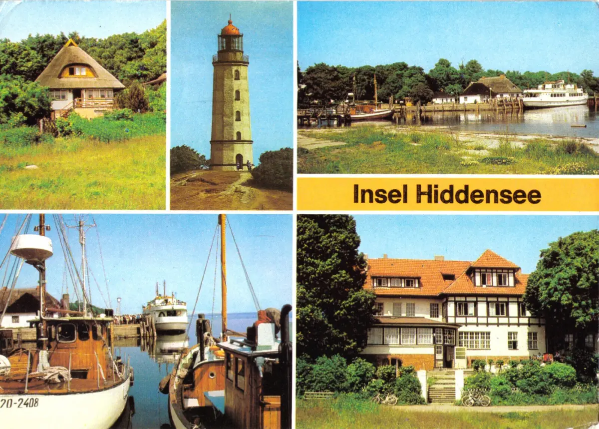 AK, Insel Hiddensee, fünf Abb., u.a. Leuchtturm, um 1989