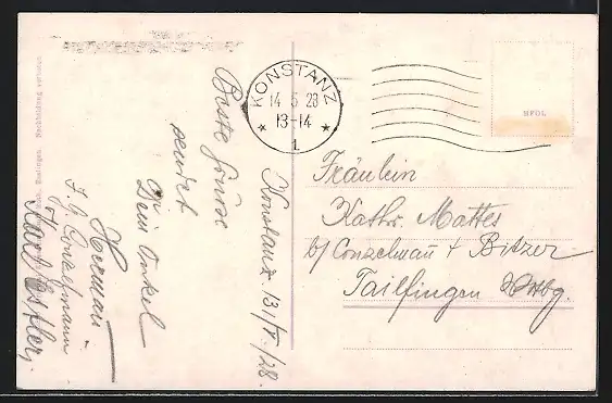 alte Ansichtskarte, gelaufen 1928, Briefmarke entfernt, guter Zustand