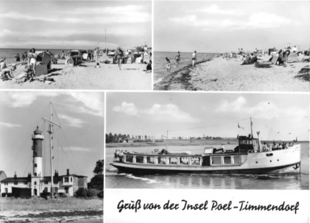 Ansichtskarte Insel Poel, Timmemdorf vier Abb. - Strand (2), Leuchtturm, MS "Ludwigsburg" Erhaltung I-II postalisch gelaufen, gestempelt: Wismar, unleserlich Druckvermerk: 1969 Herstellungsland: DDR Verlag: Graphokopie H. Sander KG, Berlin - G2133