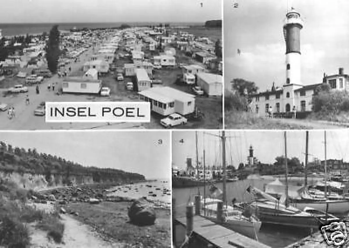 Ansichtskarte, Insel Poel, OT Timmendorf vier Abb., - Zeltplatz, Leuchtturm, Steilküste, Hafen Erhaltung I-II postalisch gelaufen, gestempelt: Wismar, 19.8.85 Druckvermerk: 1984 Herstellungsland: DDR Verlag: Bild und Heimat Reichenbach - 01 01 10 264