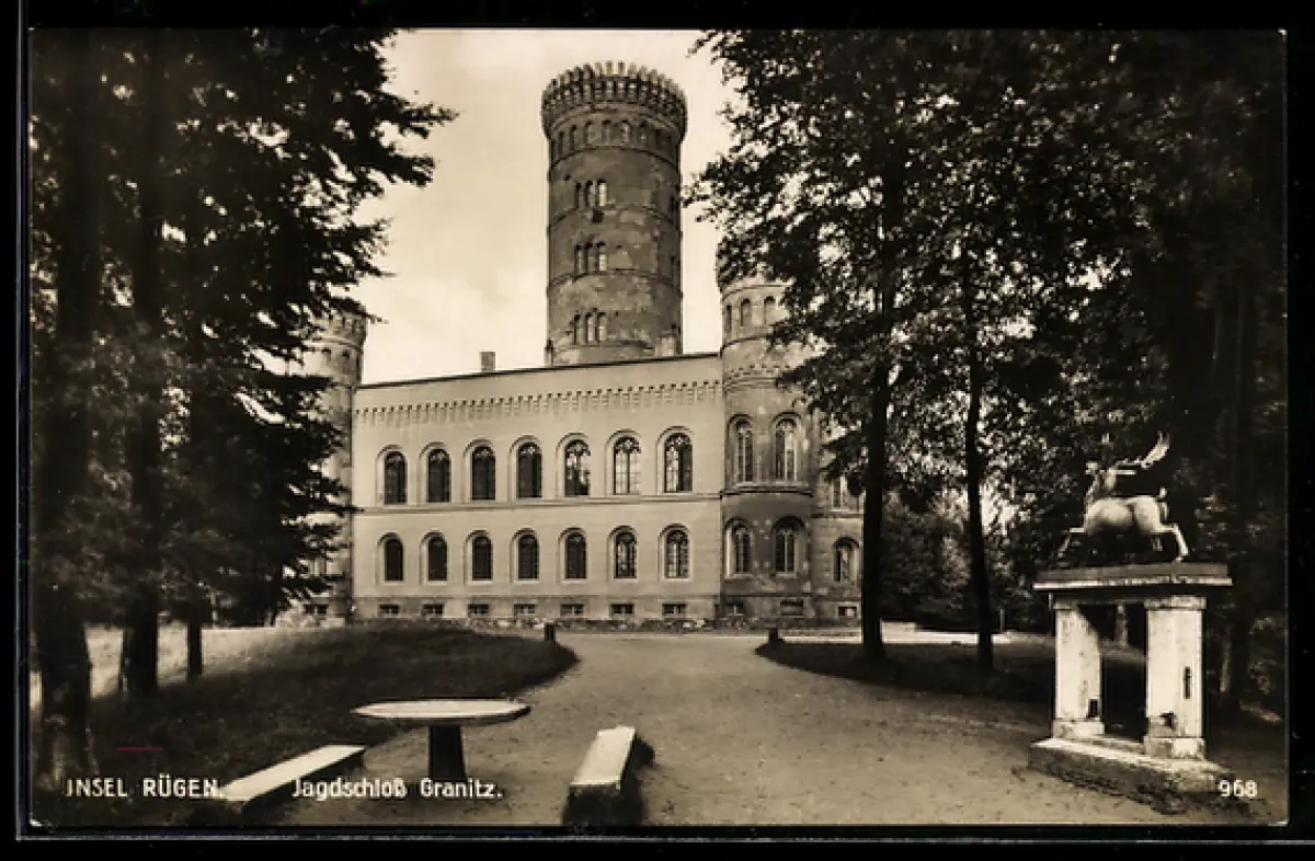 AK Insel Rügen, Blick zum Jagdschloss Granitz
