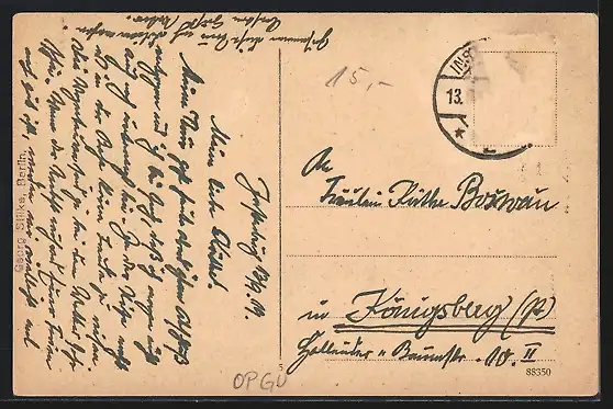alte Ansichtskarte, gelaufen 1919, Briefmarke entfernt, guter Zustand