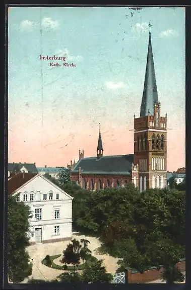AK Insterburg, Ortsansicht mit Kirche